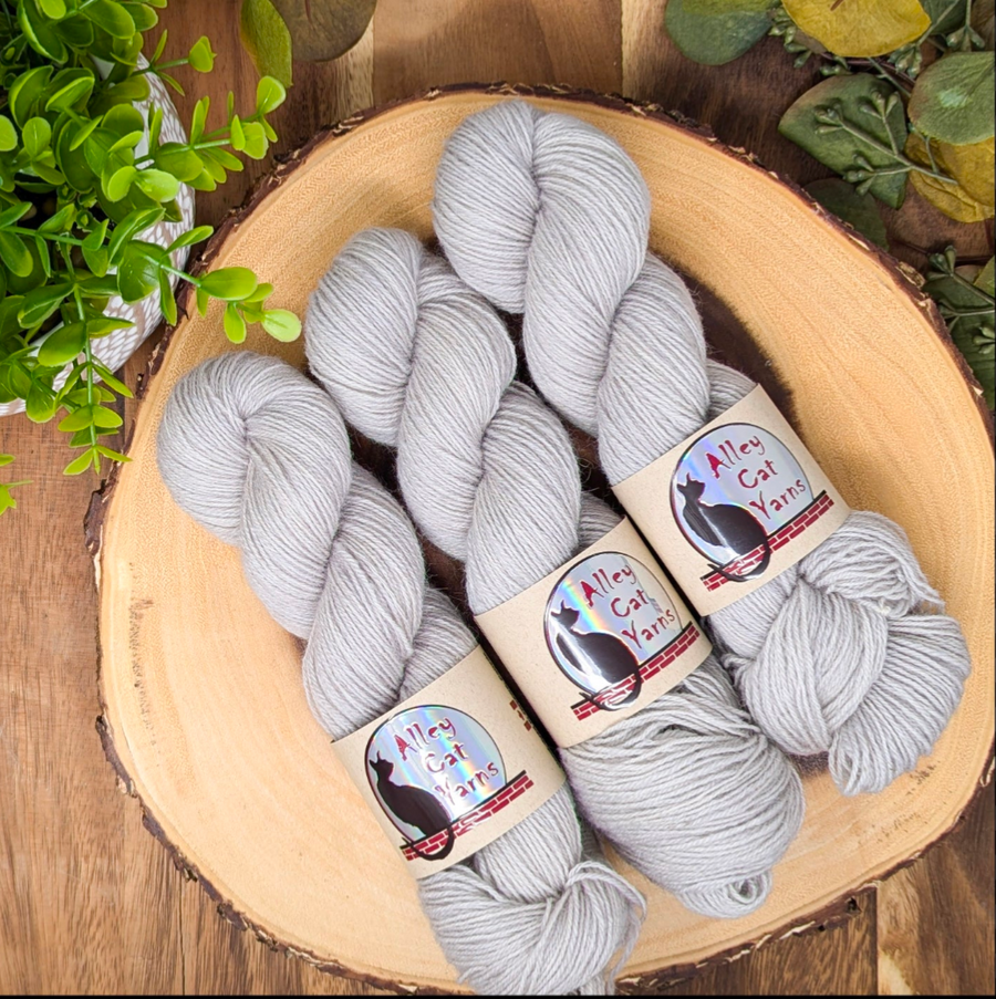 Produced exclusively for Alley Cat Yarns using 75% single-flock Dorset sheep, and 25% adult mohair.