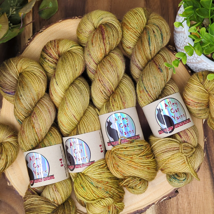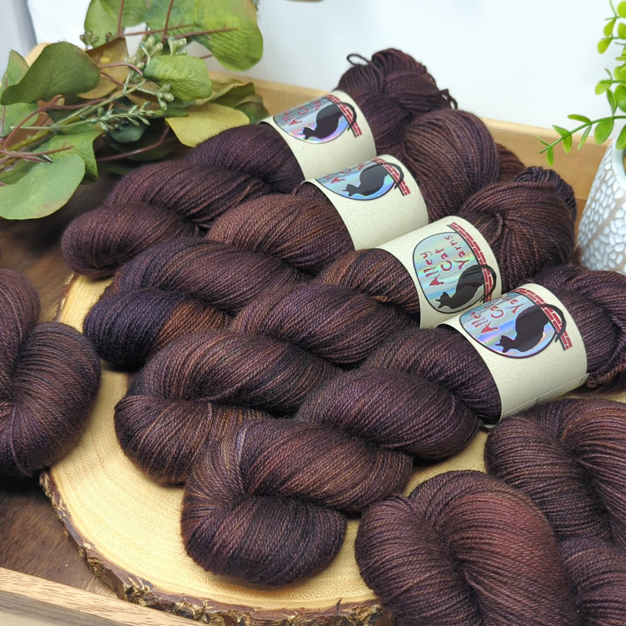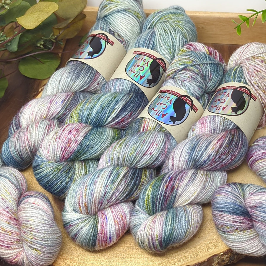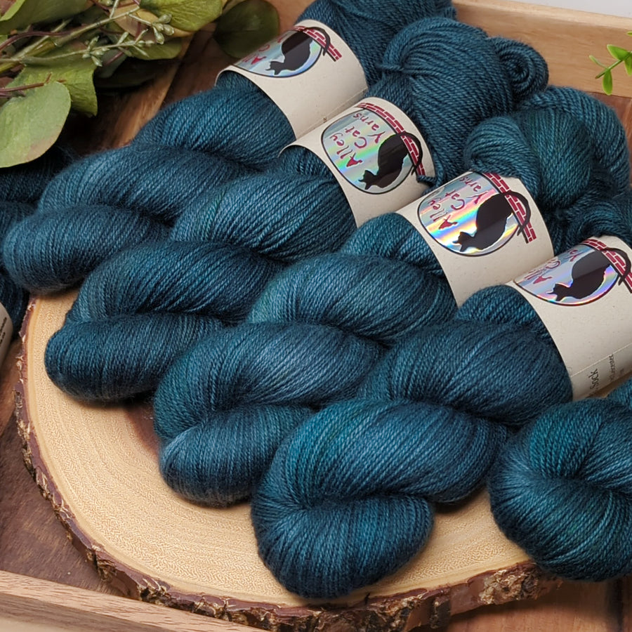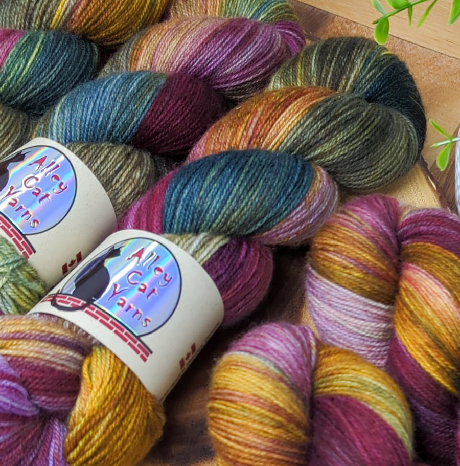 Hand-dyed with professional wash-fast acid dyes in my cat-friendly home studio. I take great care to set dye colours and then rinse yarns until no dye bleeds, however there may be some colour in your water at first wash due to differences in water properties. Please be aware that photo colours vary slightly from screen to screen.