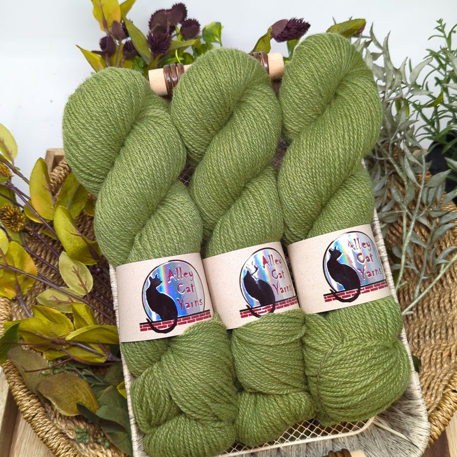 Note: This yarn falls into a DK category by weight-to-yardage ratio, but due to its woolen processing has a lofty thickness. It will make a dense fabric at a classic DK gauge, and will also fill out a worsted gauge without stitch gaps.