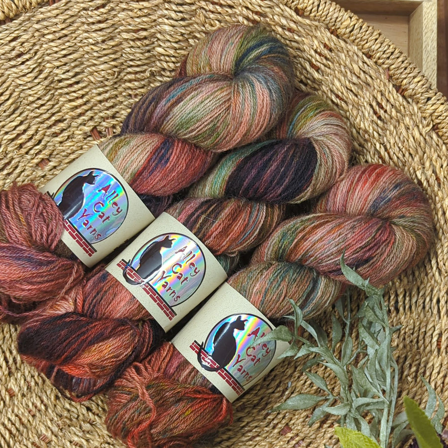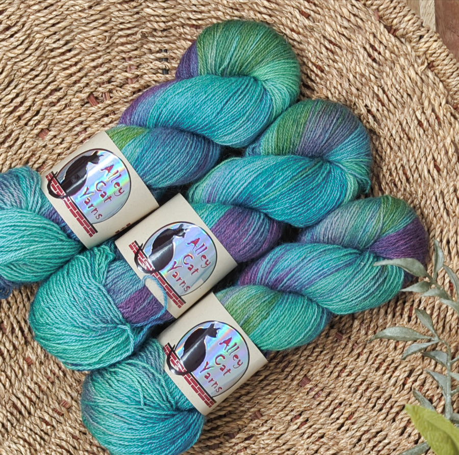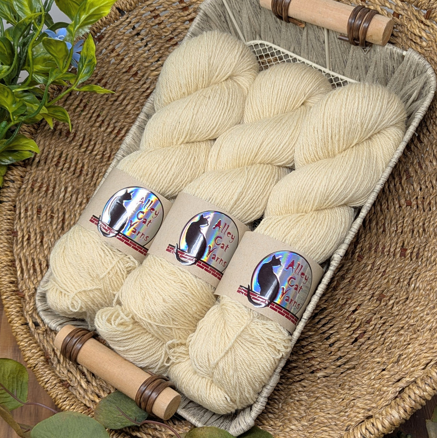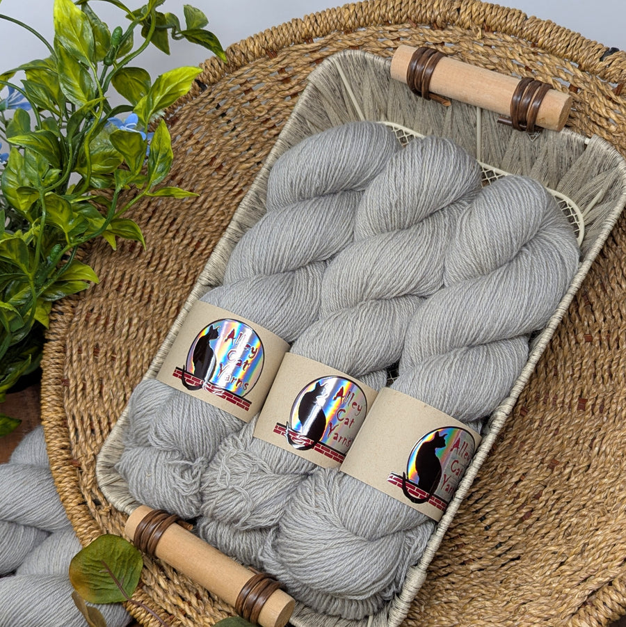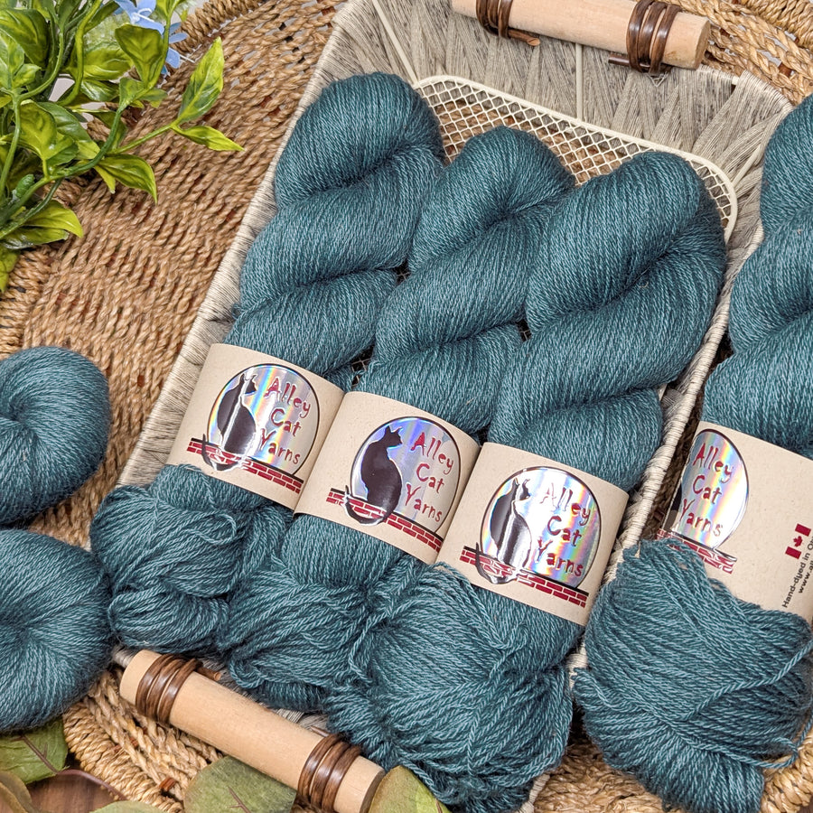 Ontario Sock is an all-purpose fingering weight yarn that is produced entirely in Ontario--exclusively for Alley Cat Yarns--using 75% single-flock Dorset sheep, and 25% adult mohair. It is tightly-spun of three plies for durability and for roundness to show off textured stitches.